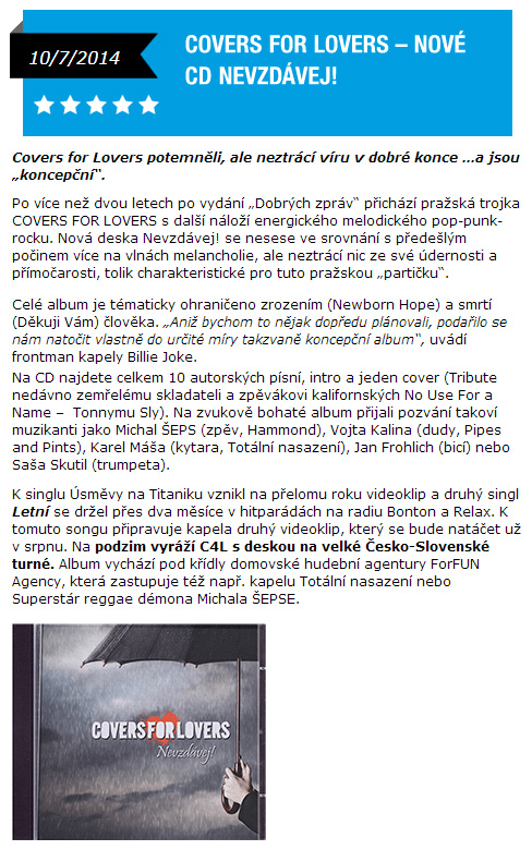 Novinky.cz - Covers for Lovers přichází s klipem k písni Hvězda